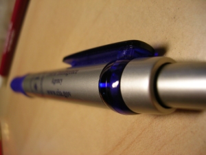 | This pen is from BB&T. It is a little too light. | This drug pen however has plenty of girth and a very big sweet spot. |