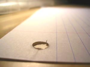 You reach into your pocket for your trusty paper wasps that you made in math class and whip the rubber band off your wrist. You load the wasp into your launcher and release. For a glistening second, this small wad of paper sails through the air. Time stops, then BULLSEYE! You smack Derek in the back of the head and he tumbles headlong to the ground. You saved the day! (or at least your day).
