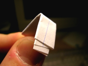 All you have to do now is fold it! This may be harder than it looks depending on the quality of paper used. You may have to bend it over the corner of your desk to get it started. |
