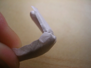 | Now, continue to fold this very tiny fold over itself as tightly as possible. |